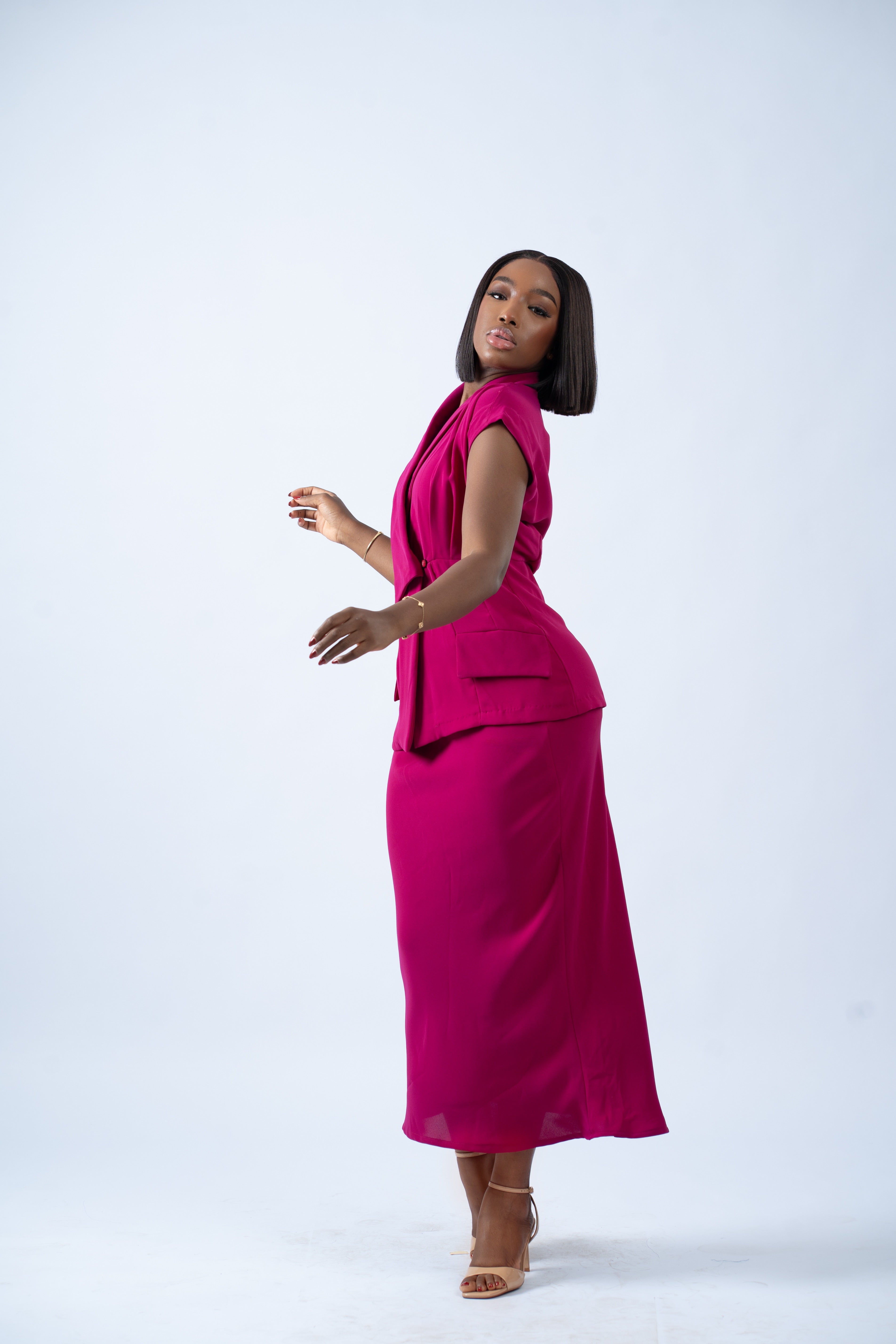 L’ensemble FANTA offre une silhouette moderne, structurée et élégante, pensée pour sublimer la taille tout en garantissant un confort absolu.