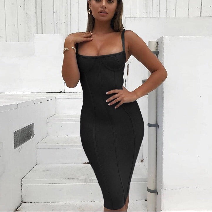 Sa coupe mi-mollet et son design minimaliste en font une tenue polyvalente, parfaite pour un cocktail, un dîner romantique ou une soirée estivale. Associez-la à des escarpins et des bijoux dorés pour un look chic et irrésistible. Cette robe incarne l’élégance intemporelle avec une pointe de sensualité.